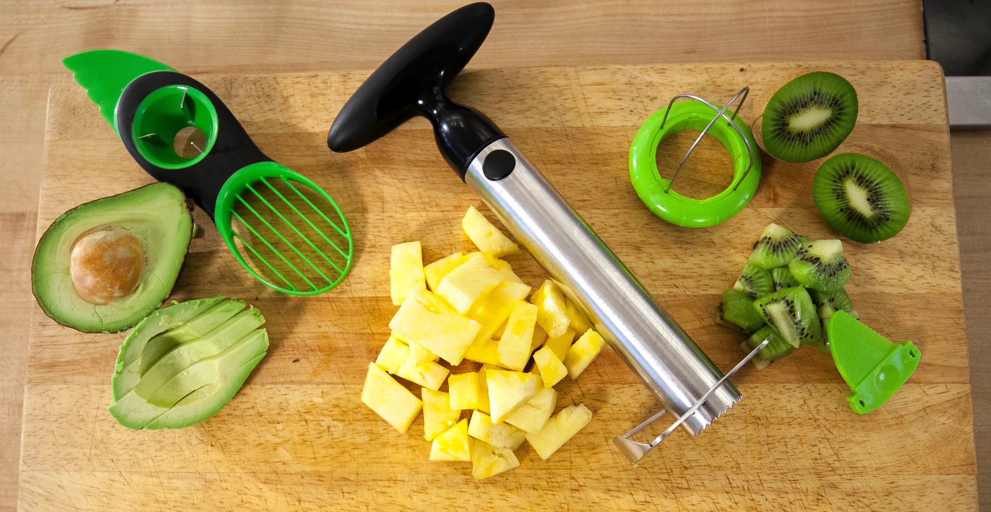 תמצאו אצלנו מגוון גאדג’טים לבית ולמטבח: כלים חכמים לבישול ואפייה (כמו קוצץ ירקות חשמלי, מפריד חלמון, מטחנות תבלינים, סו-ויד), פתרונות אחסון ושימור מזון (מכשירי איטום, מגשי הפשרה, קנקני מקרר), מוצרים לניקיון חכם (מברשות ניקוי, מכשיר אולטרסוני, קפסולות ניקוי) וגם מוצרים ללייף־סטייל ונוחות יומיומית (מנורת קריאה, מצנן שולחני).